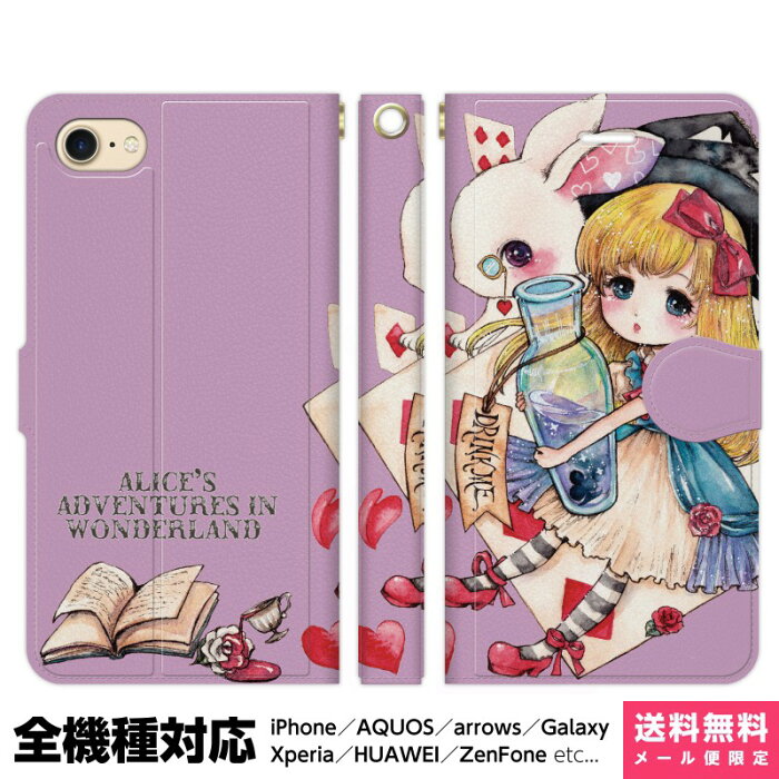 全機種対応 スマホケース 手帳型 iPhone 12 11 SE XR XS 8 Pro Max mini Xperia AQUOS Galaxy ケース カバー ペア カップル cinnamon 不思議の国のアリス 紫 時計うさぎ アリス 物語 アンティーク オリジナル ギフト グッズ 綺麗 おしゃれ スマホカバー