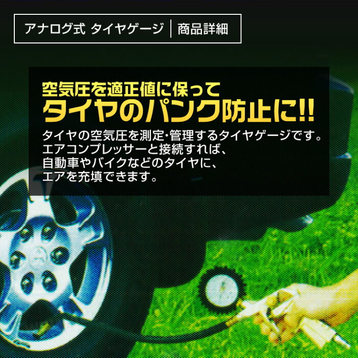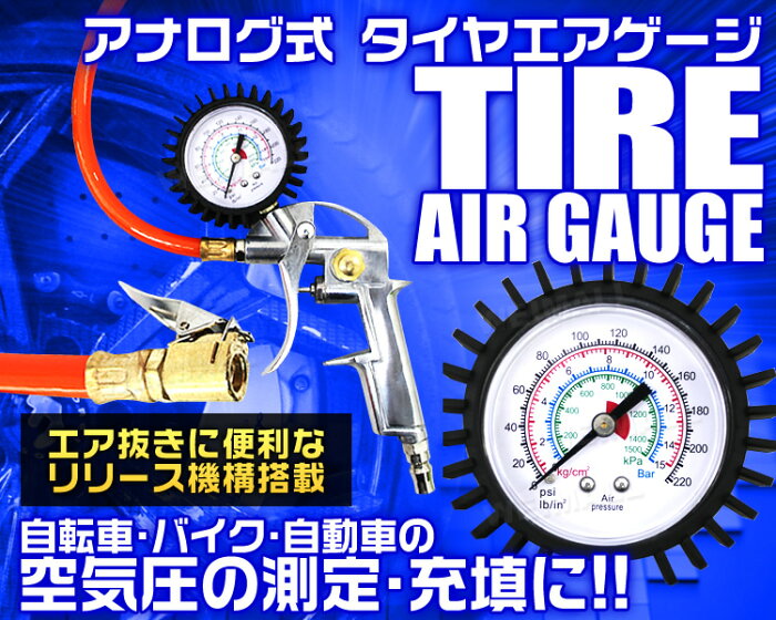 【送料無料】タイヤゲージ エアーゲージ タイヤエアゲージ エアタイヤゲージ タイヤ 空気圧 測定 空気入れ エア抜き 調整 点検 タイヤ交換 アナログ [タイヤゲージ エアゲージ 空気圧測定 減圧 充填] 送料無料