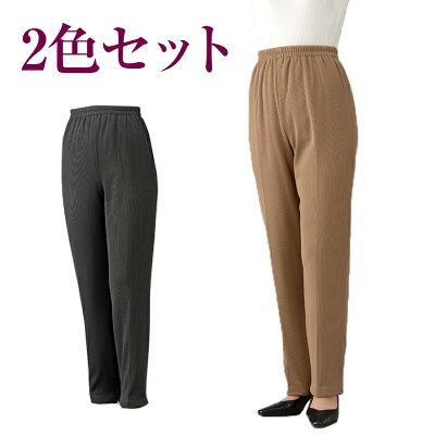 撥水加工あたたか裏起毛ひざ出しパンツ2色組 秋冬(シニアファッション 70代 80代 60代 送料無料 ハイミセス 婦人 レディース おばあちゃん服 お年寄り 高齢者 誕生日プレゼント) ズボン 暖かい 防寒 あったか